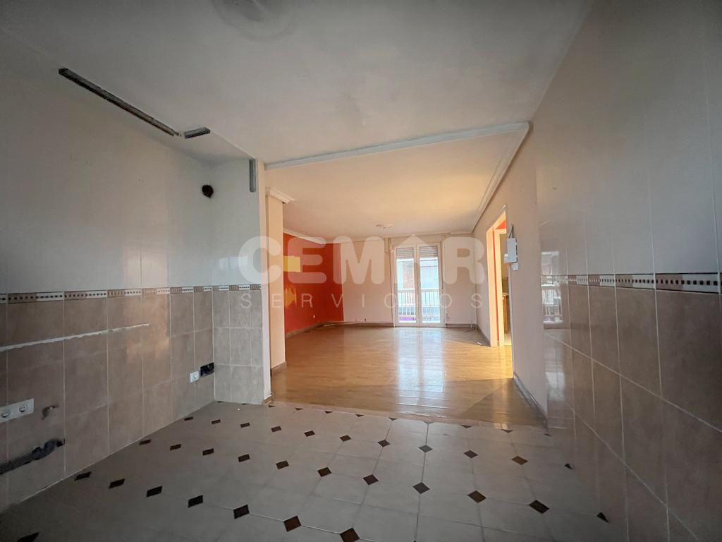 Hall distribuidor con acceso a salón abierto a cocina tipo americana a equipar, 3 habitaciones y baño. Piso totalmente exterior, suelos en parquet, ventanas en pvc y doble cristal. 5º piso y último, no dispone de ascensor.