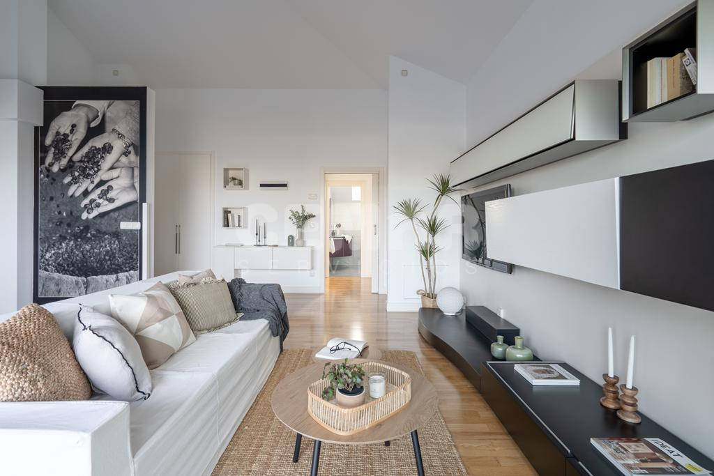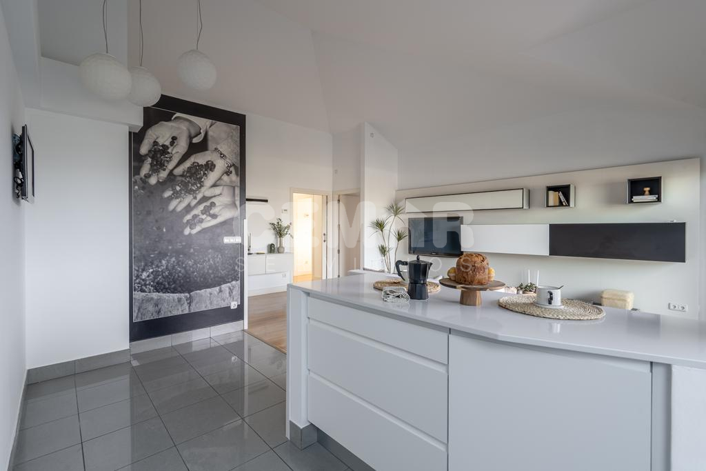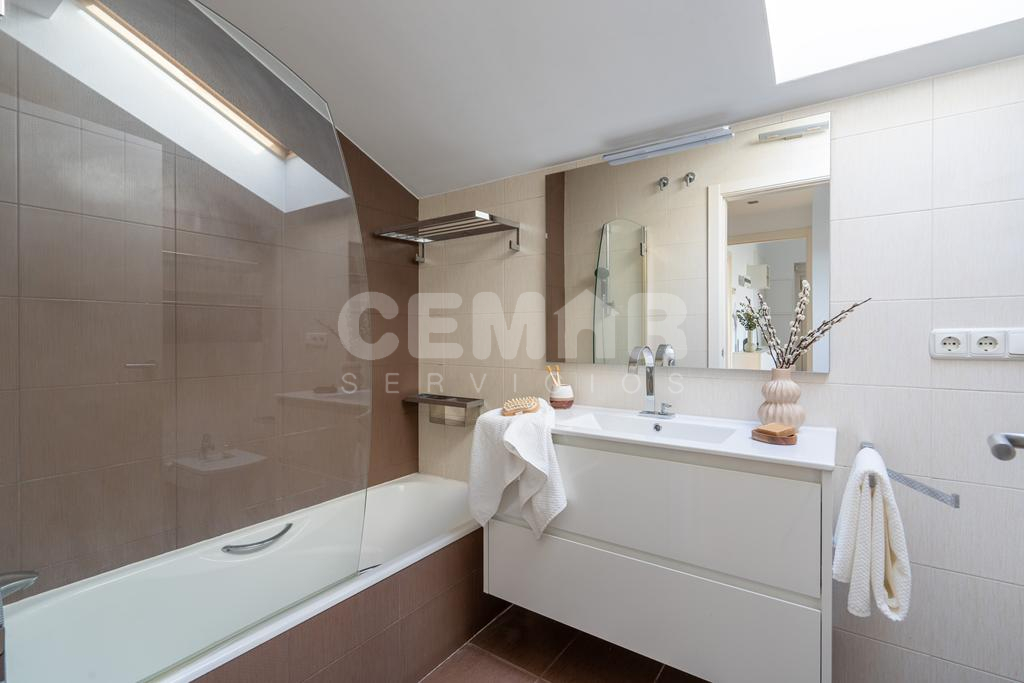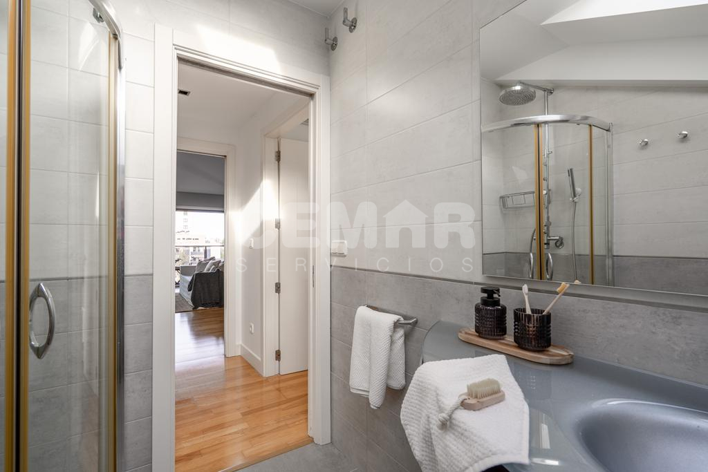 La vivienda cuenta con 95m2 útiles, más 9m2 de terraza. Se distribuye en: amplio salón-comedor con grandes ventanales y cocina totalmente equipada abierta al salón (tipo americano), todo ello con salida a terraza con vistas a Hondarribia y Hendaya. 3 habitaciones con armarios empotrados; la principal en suit con baño incorporado completo ( bañera). Además, otro baño de cortesía con plato de ducha.