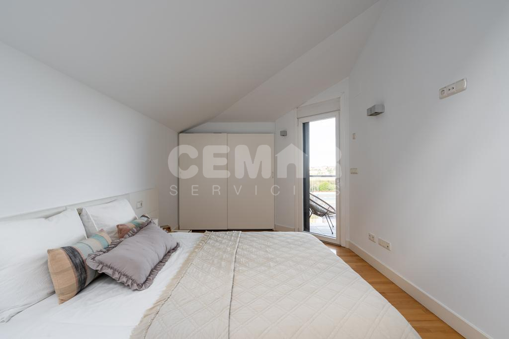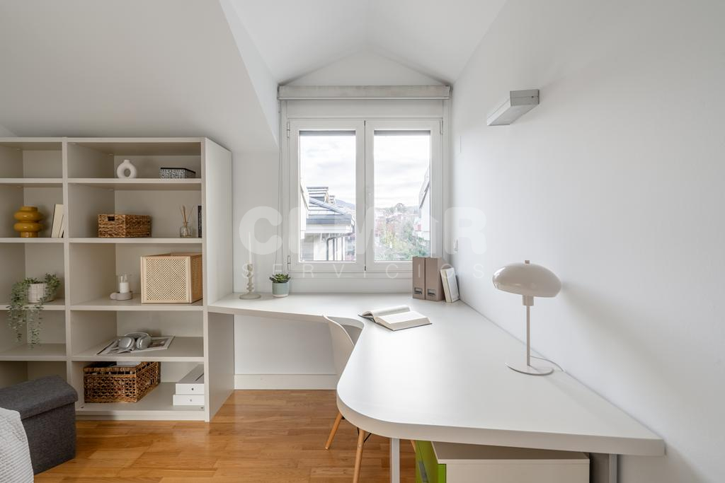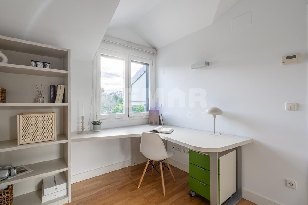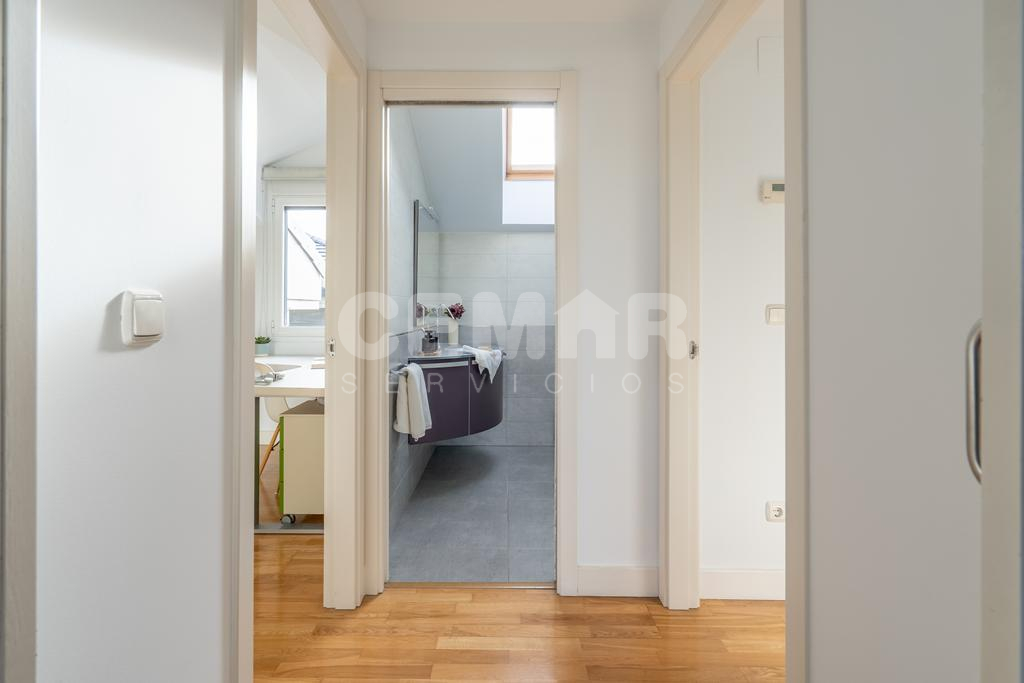 Las terminaciones de la vivienda en perfecto estado, muy luminosa, con suelos en parket de roble, puertas lacadas en blanco, alguna de ellas correderas, calefacción en toda la casa en suelo radiante por agua con caldera a gas; la vivienda está domotizada con persianas automáticas, ventanas en pvc y doble acristalamiento en climalit.