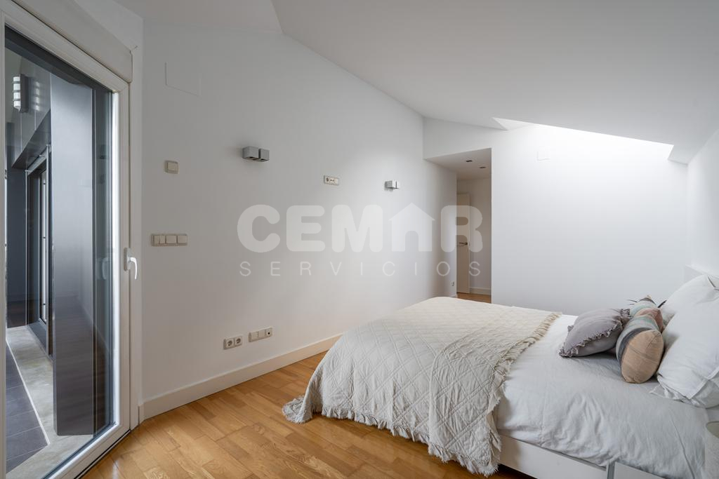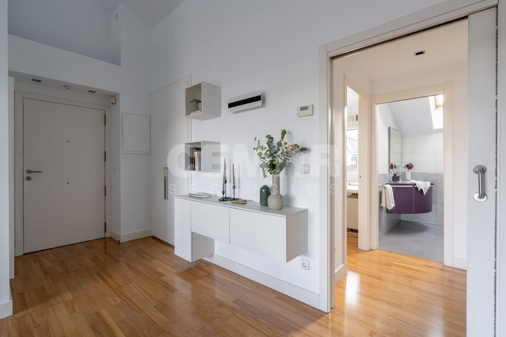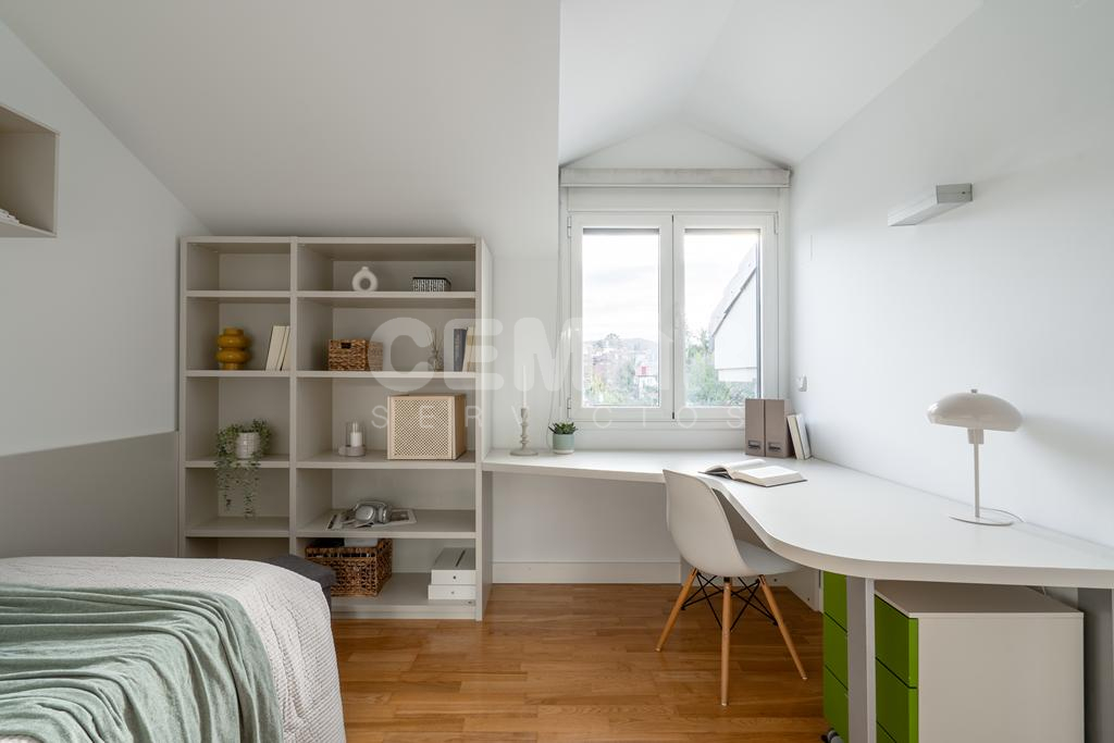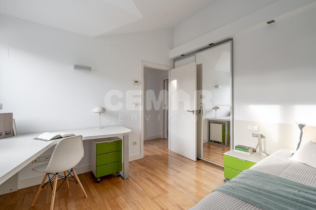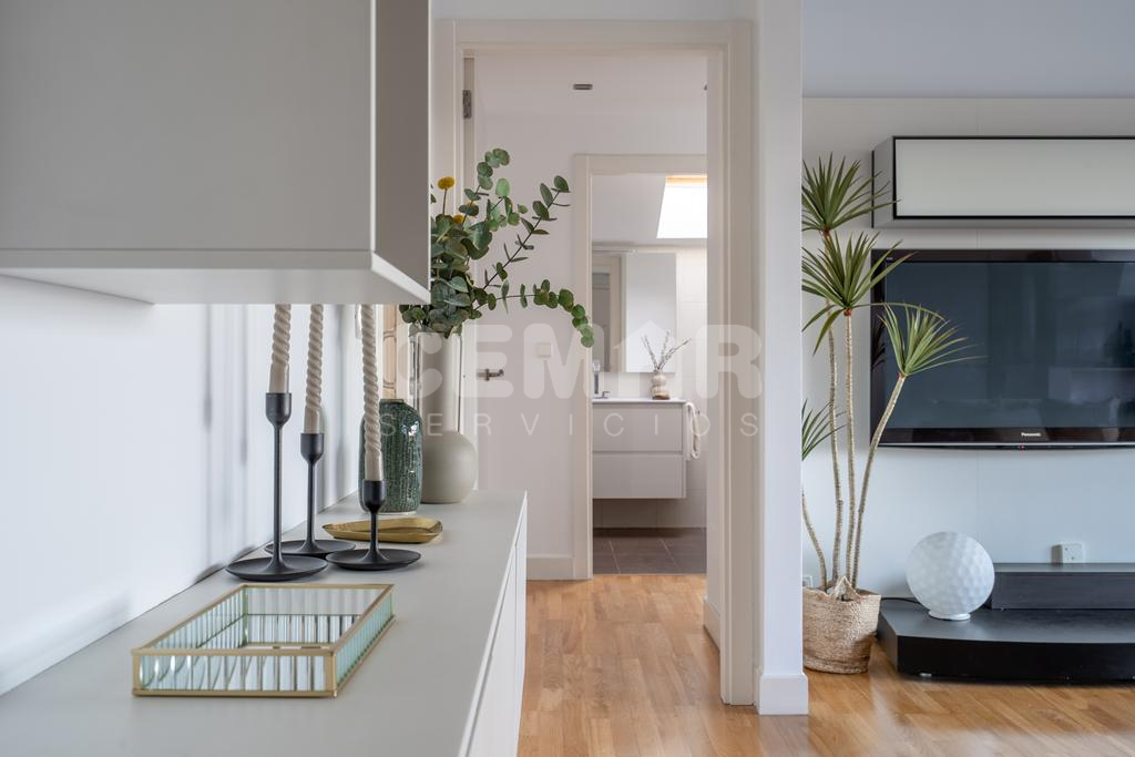 Las terminaciones de la vivienda en perfecto estado, muy luminosa, con suelos en parket de roble, puertas lacadas en blanco, alguna de ellas correderas, calefacción en toda la casa en suelo radiante por agua con caldera a gas; la vivienda está domotizada con persianas automáticas, ventanas en pvc y doble acristalamiento en climalit.